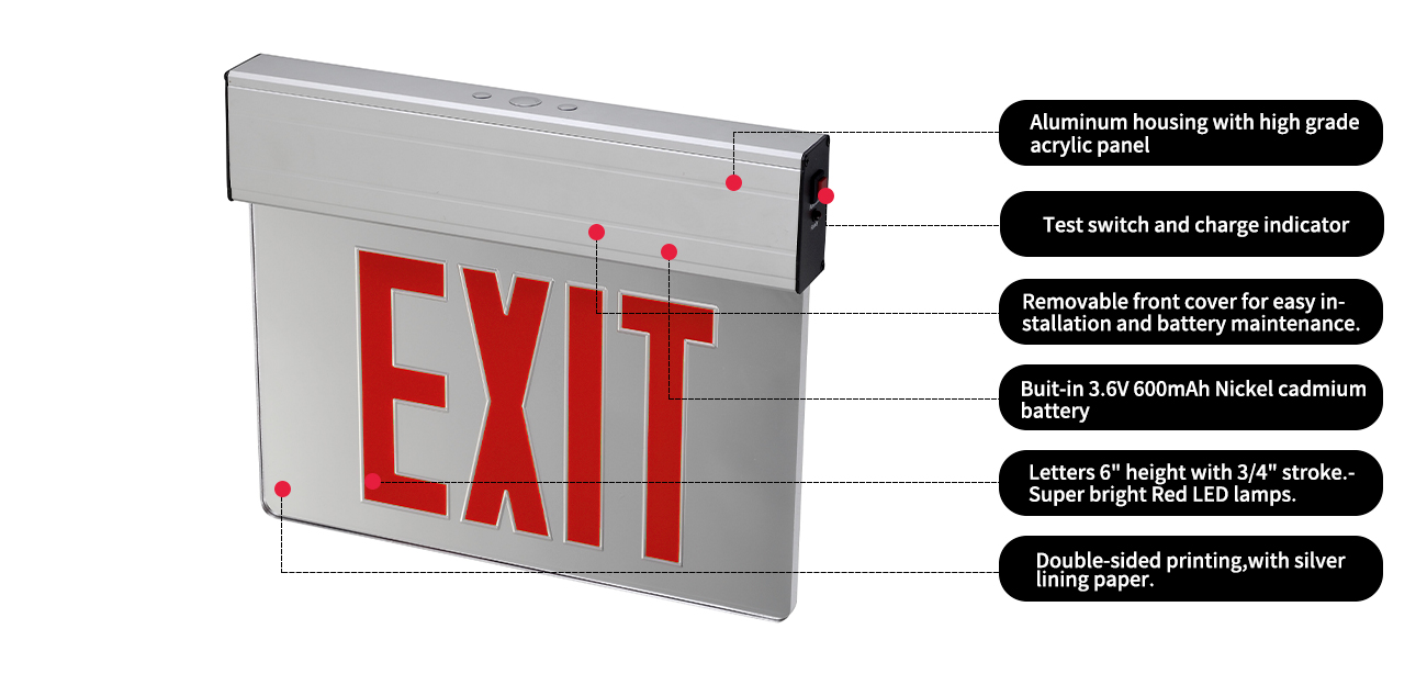 การลงชื่อเข้าใช้ทางออกที่ดีที่สุดในการออกแบบและความเก่งกาจ เครื่องหมายทางออก LED LED สีแดงนี้จะแก้ปัญหาการกำหนดค่าการติดตั้งเกือบทุกชนิด  สไตล์นี้ช่วยให้การติดตั้งเพดานด้านข้างและติดตั้งติดผนัง  แผงไฟขอบถูกสร้างขึ้นจากอะคริลิคเกรดสูงพร้อมลูกศรทิศทางที่ปรับแต่งได้เพื่อชี้ไปที่ทิศทางการออกเดอร์เดอร์เดอร์เดอร์เดี่ยวและในรุ่นสองหน้า ฝาครอบด้านหน้าที่ถอดออกได้ทำให้ติดตั้งและบำรุงรักษาปวดศีรษะโดยปราศจากอาการปวดหัว!